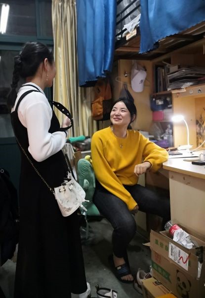 图注 团支书、班长和心理委员走访寝室