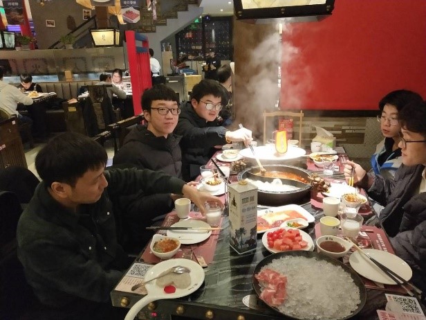 最后是班主任慷慨解囊带我们团支部去吃火锅增进感情,增进交流,并向我们介绍了他现在的研究方向,同时给予我们宝贵的学习建议和优良的学习方法。