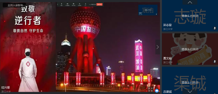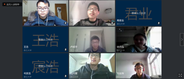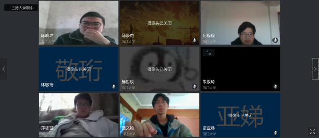 在同学们线上签到完成后,团支部会议正式开始。会议之初,同学们各自开麦,由团支书播放伴奏,奏唱团歌。震撼人心的团歌过后本应是新同学的自我介绍,因为他个人有事,会议跳过了这项。