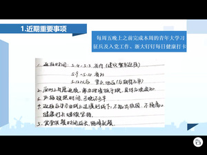 班会上,班长首先强调了近期的一些注意事项。学生应按规定返校,可晚不可早,返校后学习方式由线上过渡到线下,不能擅自出校园,坚持健康打卡,同时提醒同学们需要认真准备开学后马上到来的考试。