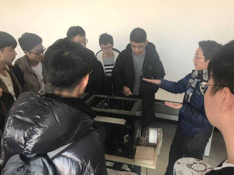 12月27号下午,在班长李飞凡和团支书蔡克兢的组织下,机械电子工程1803班全体同学以及班主任马梁于西二314开始了冬学期的第二次班会。本次班会事先由班长在班级群里通知,同学们事先获知班会大致内容。全体同学首先在教室进行完考前诚信教育。随后,有兴趣的同学在班主任马梁带领下,参观了位于浙江省三维打印工艺与装备重点实验室。