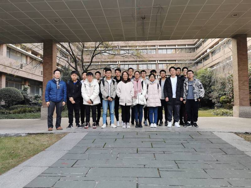最后,参观完实验室的马梁老师和同学在西四门口进行合影,为此次班会画上圆满的句号。