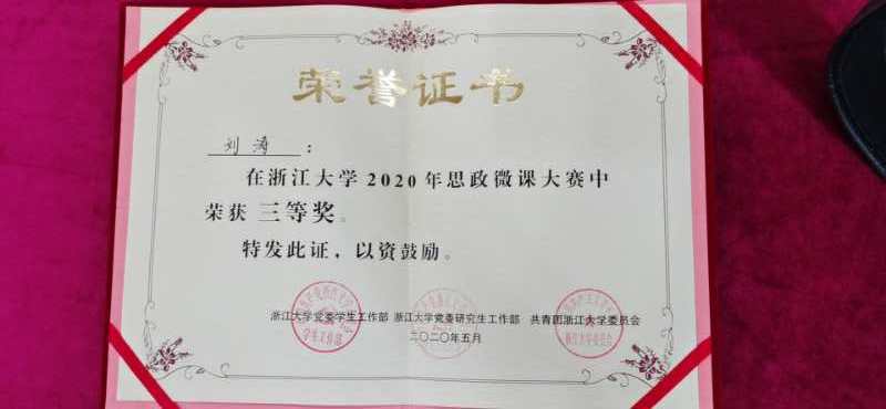 5月29日下午,浙江大学“青春心向党 建功新时代”思政微课大赛(教师组)决赛在校友楼紫金港厅成功举办,我院刘涛教授荣获三等奖。本次比赛共有66位教师参赛,经过初赛后最终选出22位进入决赛角逐。值得一提的是,刘涛教授因为疫情原因目前尚在日本,是唯一一位通过线上参与的选手,给大家带来了一堂生动且深刻的思政课。