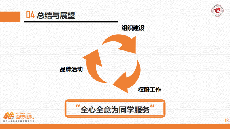 在展示的最后,孙浩南主席提到了对于未来的展望,学生会将紧紧围绕“品牌活动”“权服工作”“组织建设”,领悟共青团中央和全国学联的指导精神,在校团委、院团委与校学生会的领导下,继续发扬学生会优良传统,传承优秀活动经验,培养服务意识,提高服务质量,将“全心全意为同学服务”的宗旨贯彻学生会今后工作当中。