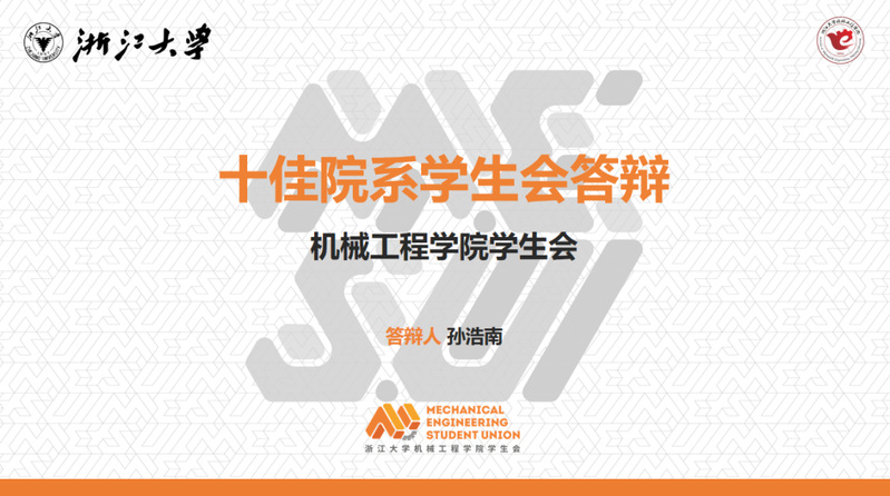 答辩过程中,孙浩南主席主要从制度与机构建设、活动介绍、品牌活动三个方面展示了机械工程学院学生会的职责与特色所在,并在最后提出了总结与展望。