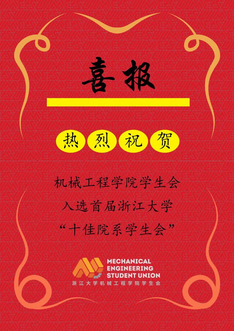 6月6日,首届浙江大学十佳院系学生会评比成功开展,学生会主席孙浩南代表机械工程学院学生会参与答辩,表现出色,最终机械工程学院学生会荣获浙江大学“十佳院系学生会”称号。