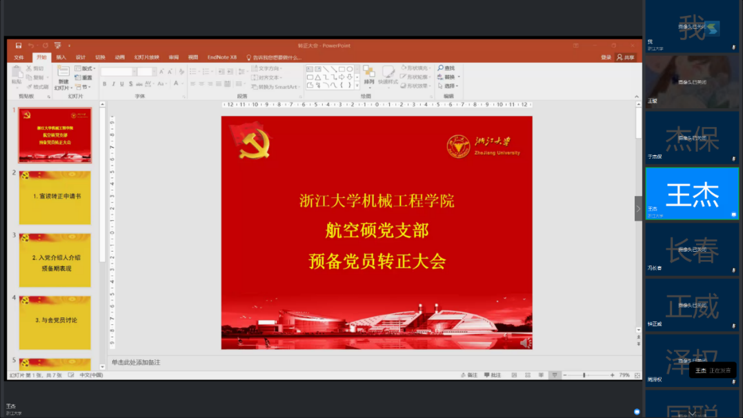 图注:线上召开预备党员转正大会
