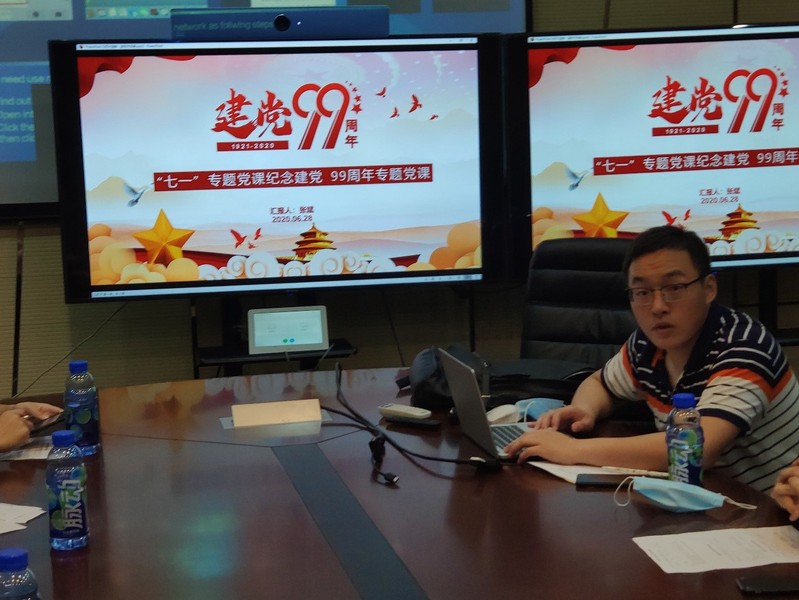 张斌同志首先回顾了中国共产党自1921年建党以来带领全国人民推倒压迫中华民族一百余年的“三座大山”,实现新民主主义革命的艰辛而又伟大的历程。在对党史进行了一个简单的回顾之后,支部开展了简单的党史知识竞赛活动,同志们踊跃举手,积极回答PPT上设置的党史问题。在回答问题与聆听支部书记张斌同志的讲解中,同志们逐渐加深了对党史、党章的了解,对中国共产党“为人民服务”的宗旨有了更深的体会。
