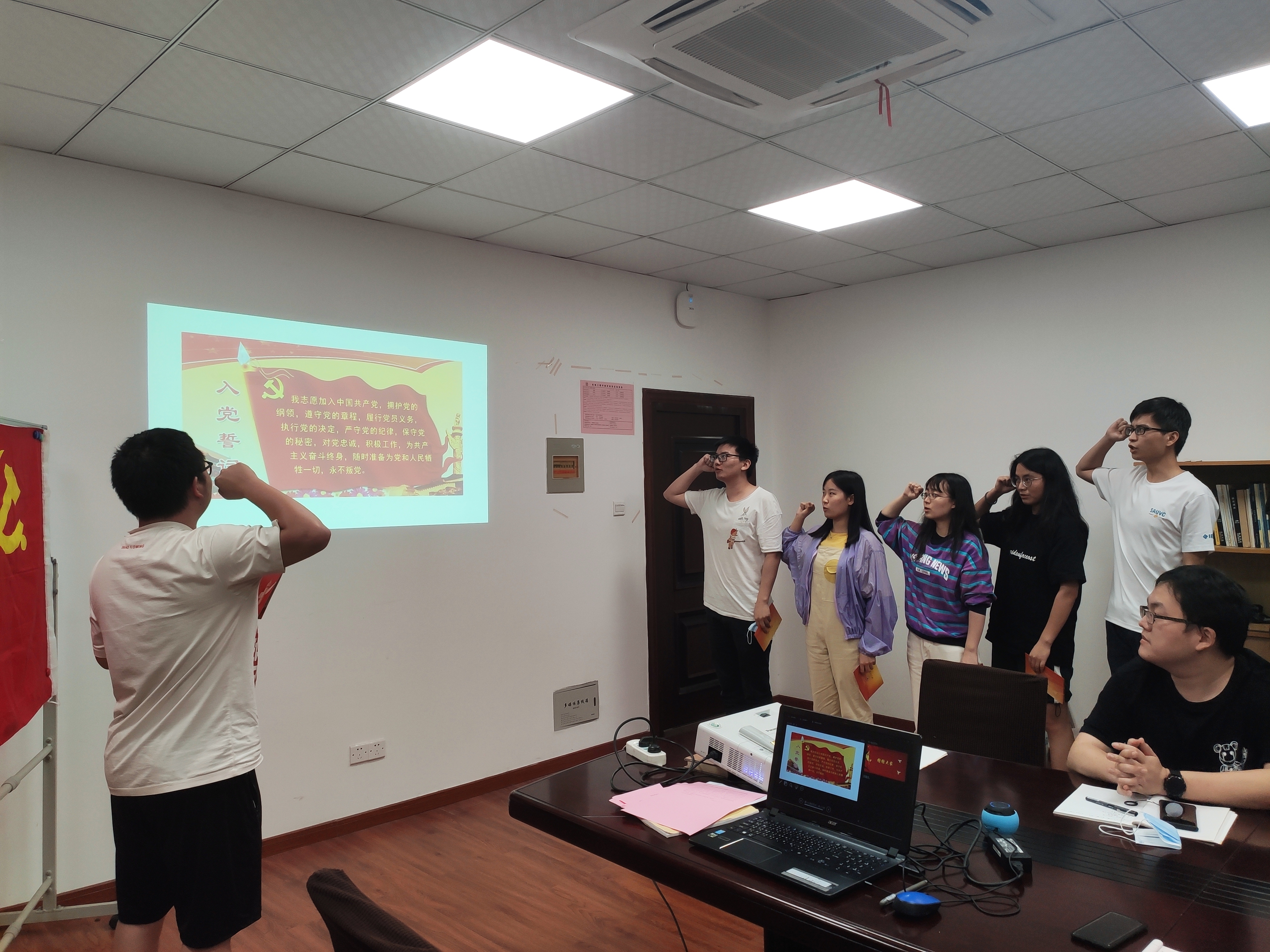 最后,支部书记带领几位过政治生日的同学一起重温了入党誓词,我们应牢记党的初心和使命,以实际行动践行党员的使命,为我党献上最有意义的生日礼物。