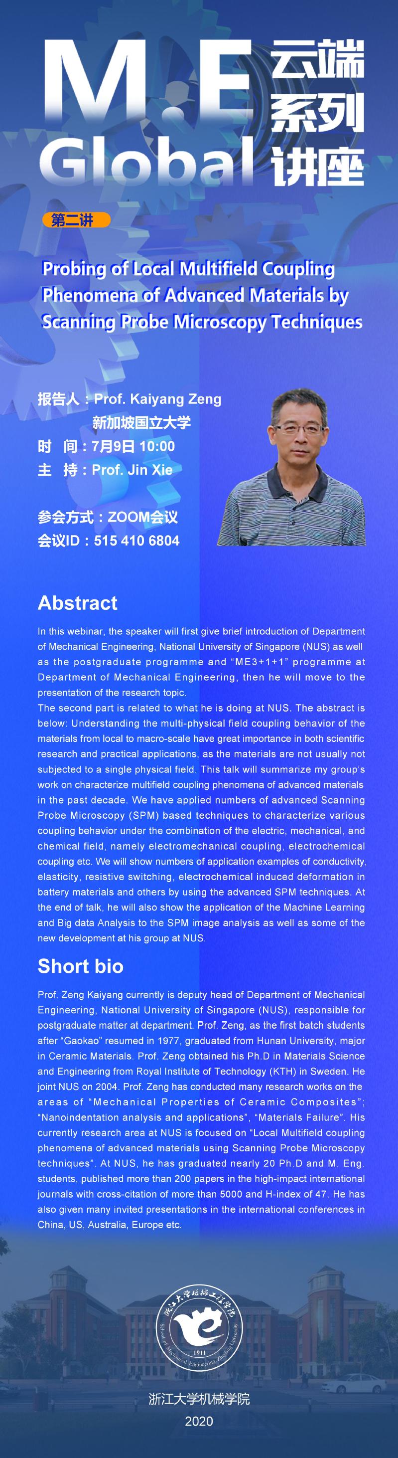 机械工程学院M.E Global云端系列讲座——新加坡国立大学Kaiyang Zeng教授报告会