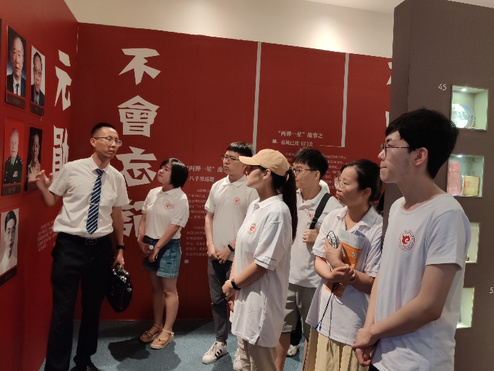 队员们先后参观两弹一星大事记墙,主题雕塑和陈列馆,了解两弹一星功勋科学家的事迹。随后,实践团中的党员同学进行了重温入党誓词宣誓仪式,马兰战友沈冶华老师向实践团成员们逐一赠送了国家使命纪念章和两弹一星纪实文集书籍。