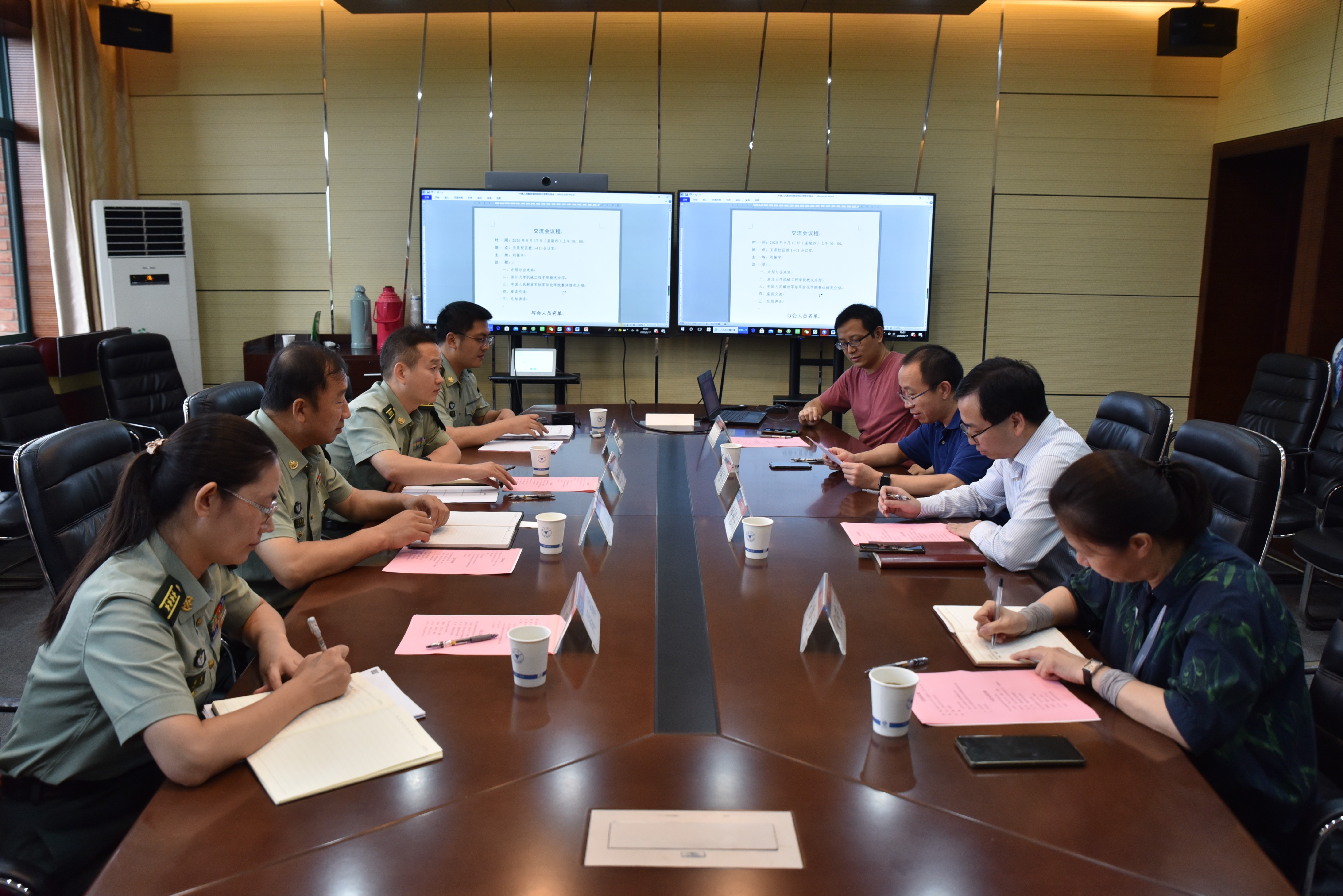 刘振宇副院长主持会议,并作浙江大学机械工程学院概况简要介绍,王洛国则介绍了中国人民解放军陆军防化学院整体情况,随后双方围绕研究生教育教学工作方面的问题,开展了深入的交流探讨。梅德庆书记在讲话中指出:非常欢迎王洛国教授一行来我院开展交流,希望以此为契机,能加强双方的交流合作,今后,浙江大学机械工程学院也会积极支持中国人民解放军陆军防化学院开展研究生教育培养工作。