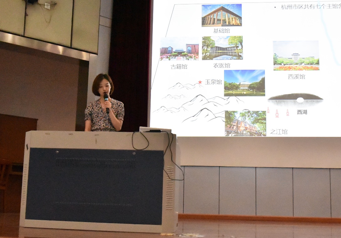 下午1时30分,浙江大学图书馆参考咨询部邵博云老师进行图书馆资源与服务专题的讲座。邵博云老师分别从馆舍,资源,服务三个方面向新生们展示了浙江大学图书馆九大馆舍概况,拓宽大家对图书馆资源与服务的认知。又详尽介绍了各图书馆节约技能的步骤,考虑到研究生们的科研工作需要,邵老师向大家展示了理工类常用的权威性中、外文数据库,介绍了图书馆包括信息共享空间、悦空间、芸阅读、文化讲座及展览等一系列服务以及预约使用方法,为同学们在学习和科研之余体验阅读的乐趣、开拓文化视野提供了良好的基础。