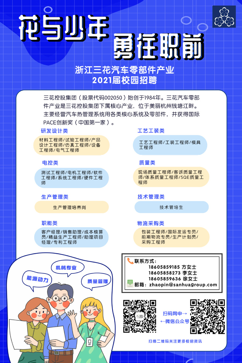 现三花控股集团(杭州)正处于高速发展期,望有志青年能加盟三花,共创事业。