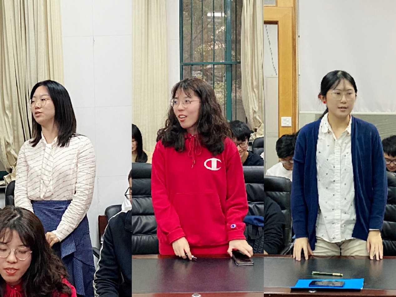 图注:新任支委会成员。从左往右依次为王越、张梦茹、吕晨昕同志。