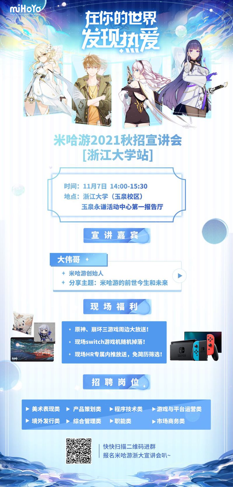 【招聘岗位】美术表现类、程序技术类、境外发行类、职能类、产品策划类、游戏与平台运营类、综合管理类、市场商务类。了解更多岗位信息请点击官网并网申https://app.mokahr.com/m/campus_apply/mihoyo/7525/
