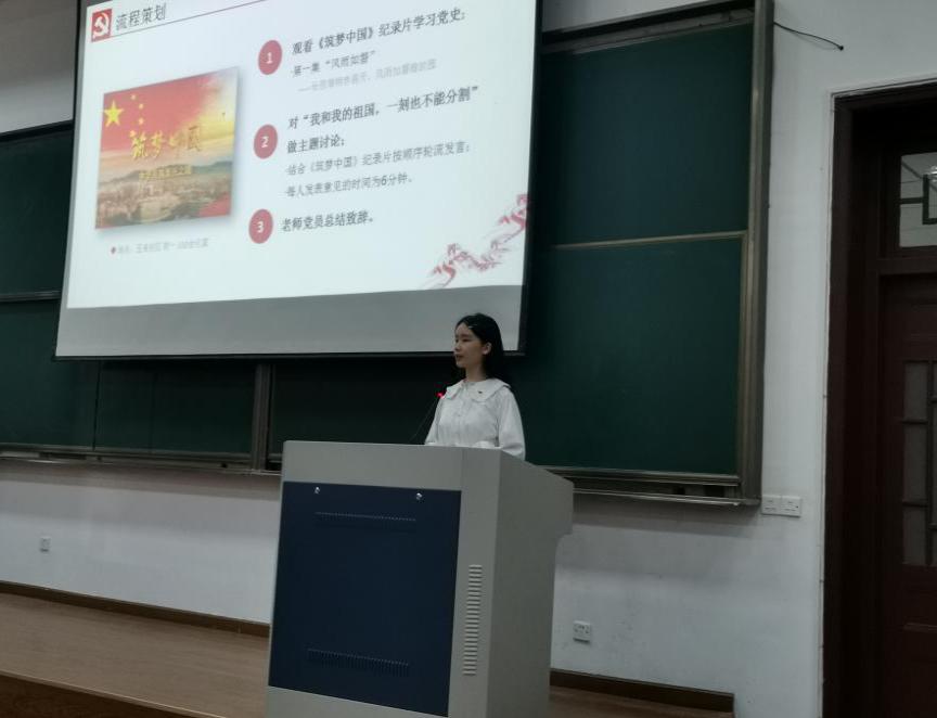 在党支部组织生活案例展示环节中,各支部书记通过PPT展示了近期本支部一项经典支部活动的组织和开展情况。李杨宁同志带领支部党员进行《我和我的家乡》观影活动,并组织成员讨论了观影感悟,深化了习主席“不忘初心,牢记使命,顽强奋斗,夺取脱贫攻坚战全面胜利”的思想。张昱晓同志组织支部观看《筑梦中国》纪录片,并进行主题为“我和我的祖国,一刻也不能分割”的讨论交流,培养了党员的爱国精神,增进了为中华之崛起而读书的决心。潘登同志组织支部进行了“抗美援朝精神”主题学习系列活动,通过战史学习、集体观影、线下讨论,让党员重温历史,铭记幸福的来之不易,将中华儿女“无畏霸权,一往无前”的勇气和魄力刻入党员内心。其他几位书记根据各自的支部特色也纷纷带来了精彩的案例展示。