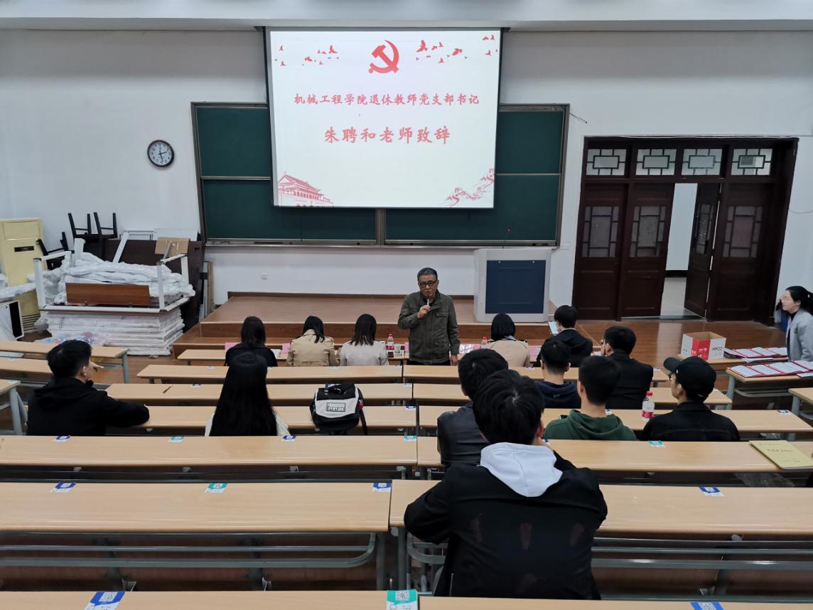 所有比赛环节结束后,退休党支部书记朱聘和老师对本次大赛进行致辞。朱老师对党支部书记素能大赛活动的意义给予了充分肯定,同时肯定了机械工程学院学生党支部书记们的能力。朱老师回忆起自己做党支部书记时的岁月,对党组织的发展壮大感到感慨和欣慰,他期望我们新一辈党员可以继承前辈优良传统,进一步壮大党组织,并对学院党委发展表达了由衷的祝愿。