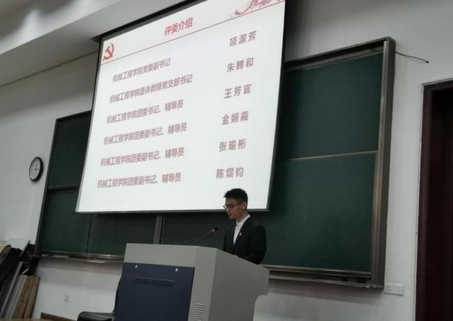 当日中午12:15,机械工程学院第六届党支部书记素能大赛决赛正式开始。本次活动邀请了机械工程学院党委副书记项淑芳老师、学院退休党支部书记朱聘和老师、学院团委书记及辅导员王芳官老师、学院团委副书记及辅导员金娟霞老师、张瑜彬老师和陈熠钧老师作为评委嘉宾。