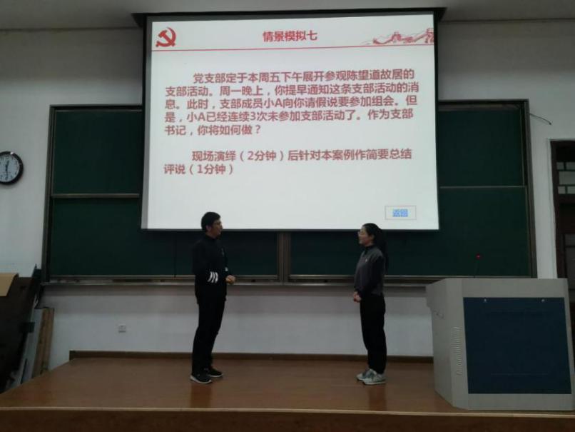 决赛内容分为两个环节,分别是党支部组织生活案例和情景模拟。