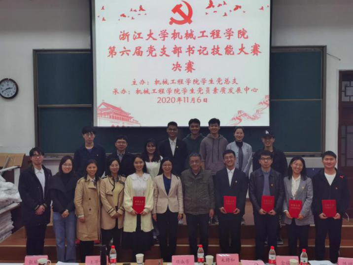 深入开展“不忘初心,牢记使命”主题教育,培养和提高学生党支部书记的工作能力和综合素养,丰富党支部活动形式,浙江大学机械工程学院于2020年11月6日在浙江大学玉泉校区第一教学楼234教室开展了机械工程学院第六届党支部书记素能大赛。在此之前的预赛中总共有八名优秀的党支部书记脱颖而出,成功晋级本此决赛。