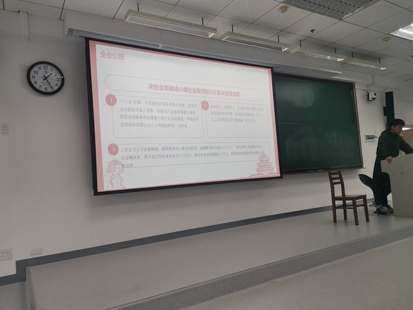 为全面了解“十九届五中全会”实况,学习党的方针政策,深入学习领会十九届五中全会精神,机械工程学院的1901班、1903班以及1906班于11月28日周六下午一点在东二204举行了关于学习党的十九届五中全会精神的跨班主题班会。此次班会意在提高同学们的党性意识和整体素质,了解作为大学生该如何践行全会精神,找准自己在新时代格局的定位并奉献自己的一份力量。来自三个班级的同学参加了此次班会,班会主要由各班代表主持。