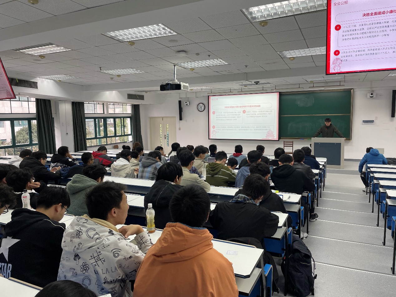 党的十九届五中全会于2020年10月26日至29日在北京举行,是在我国将进入新发展阶段、实现中华民族伟大复兴正处在关键时期召开的一次具有全局性、历史性意义的重要会议。为了深入学习党的十九届五中全会精神,响应学习新思想,争做新青年的号召,加强学生的爱国情怀和国家意识,机械工程1906团支部于11月28日下午在浙江大学紫金港校区东2-204教室举办了关于学习党的十九届五中全会精神主题班会。机械1906团支部的全体学生参与了本次班会,会议由1901班长朱科祺、1903班班长曹宇恒和1906班团支书石大杭共同主持。