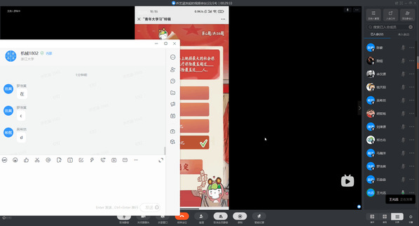 在视频学习之后,我们团支部再次重温了关于十九届五中全会的青年大学习视频,举办一个小型的知识静思啊,让同学们一起回答十九届五中全会的问题。