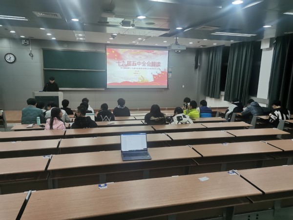 中国共产党第十九届中央委员会第五次全体会议,于2020年10月26日至29日在北京举行。为深入贯彻学习全会精神,响应国家对新时代青年的号召,增强本班学生的社会责任感与使命感,机械工程1902团支部于11月29日晚在浙江大学紫金港校区西2-205教室举办了关于学习党的十九届五中全会精神主题班会。本次班会由我班全体学生参加,由班长徐佳航主持,团支书代洋飞同学作为ppt主讲人,带着同学们全面学习解读了第十九届中央委员会第五次全体会议公报重要内容。