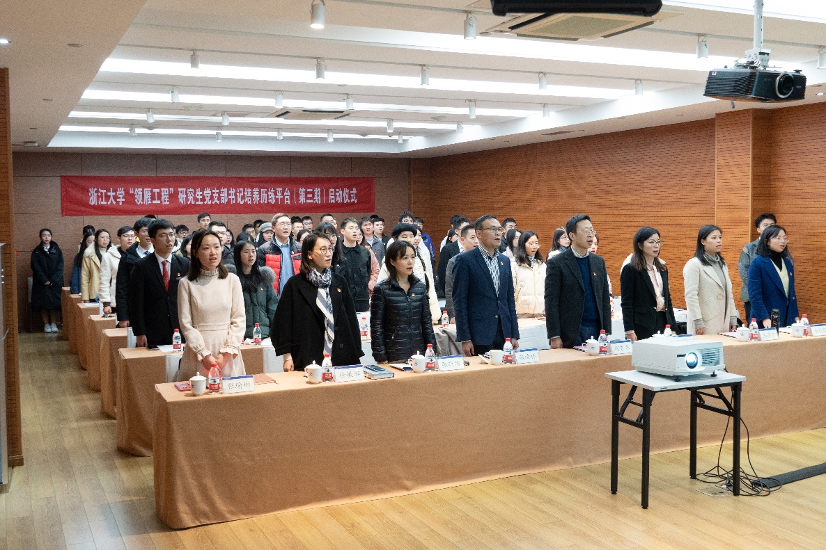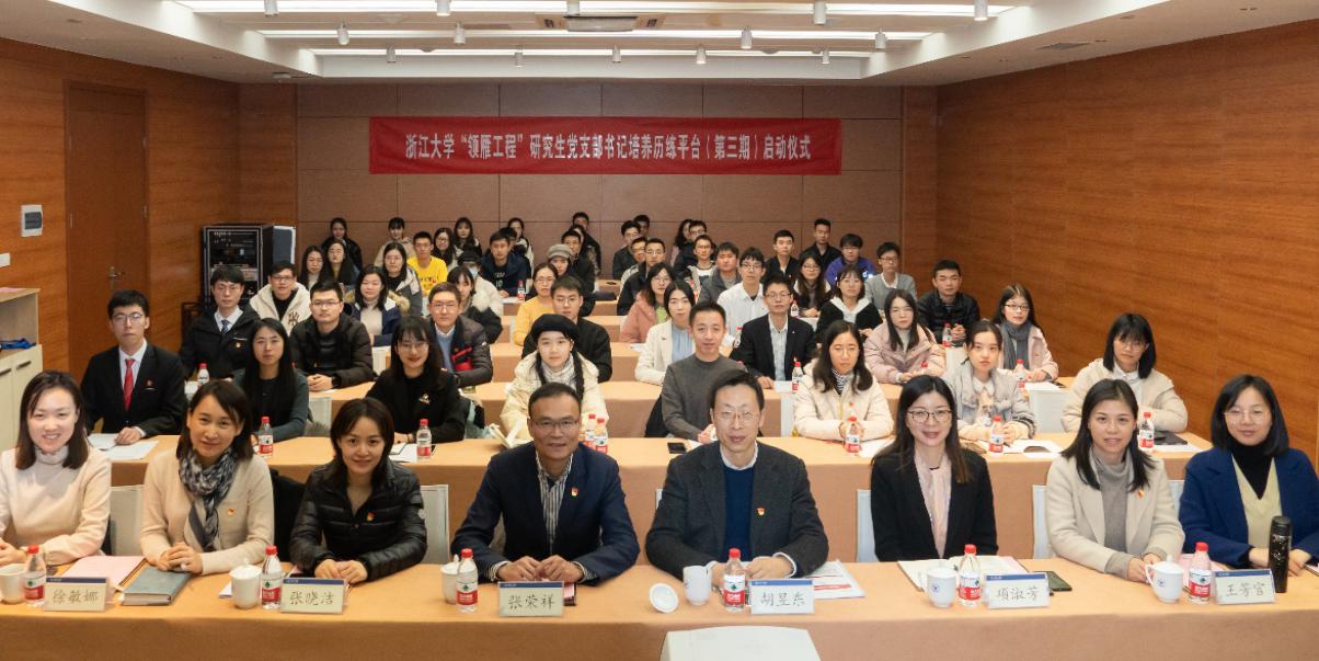 为深入学习贯彻习近平新时代中国特色社会主义思想,扎实推进学生党建“双引双提”工程,进一步提升我校研究生党支部书记的思想政治素质、政策理论水平和实际工作能力,2020年12月3日,由浙江大学党委研究生工作部主办、机械工程学院承办的浙江大学“领雁工程”研究生党支部书记培养历练平台(第三期)启动仪式在浙江大学紫金港校区校友楼西溪厅隆重举行。