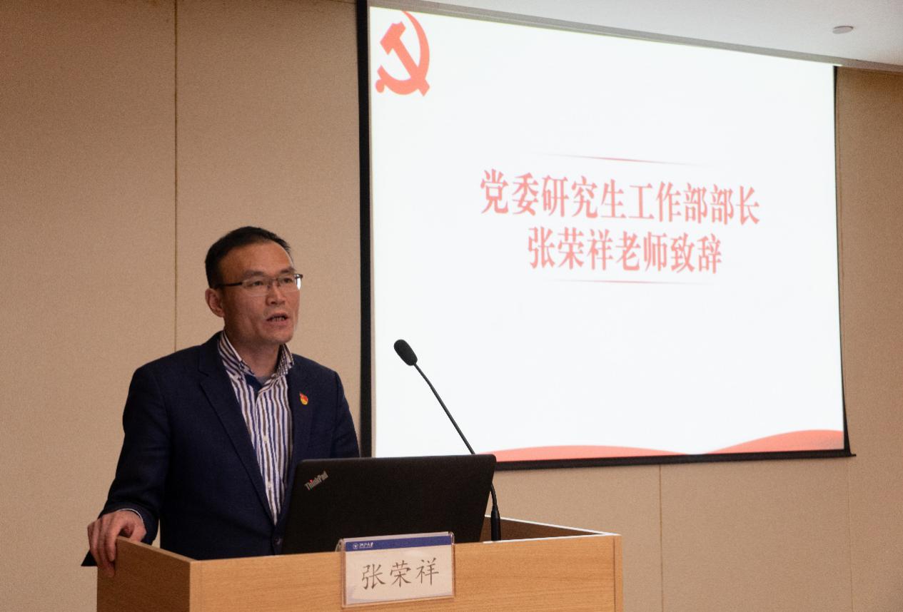 首先,张荣祥部长代表党委研究生工作部致辞。他表达了对“领雁工程”创新性引入组织生活案例展示,通过研究生党支部书记Workshop发挥样板党支部引领作用等探索的充分认可。张荣祥强调党支部书记作为党基层组织的“领头雁”,在党支部的建设中起着重要的指导作用,他对各位样板党支部书记提出了要求,希望大家提高政治站位,按照对标争先中“七个有力”的创建工作任务指南和学生党建“双引双提”工程建设的有关要求,不断加强和创新自身党支部建设,充分发挥引领示范、辐射带动作用,进一步带动全校基层党建高质量发展。