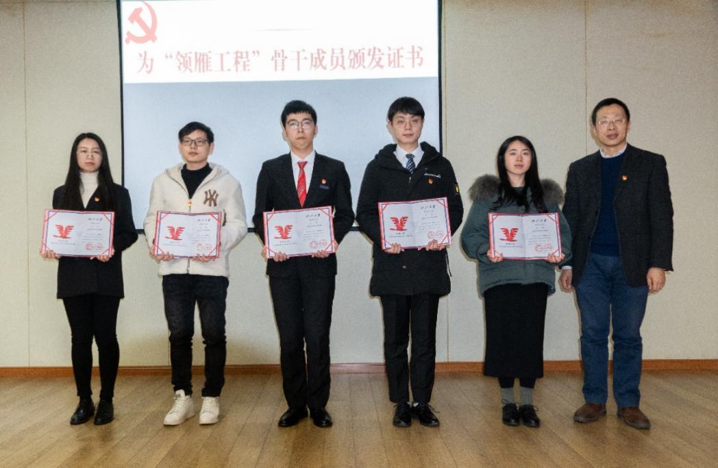 之后,浙江大学党委组织部副部长胡昱东为“领雁工程”第三期骨干成员代表颁发了证书。第三期“领雁工程”骨干成员由首批通过验收的“全校党建工作样板支部”中的研究生党支部书记组成,旨在通过“骨干成员”的引导,让全校的研究生党支部书记对自己的职责和目标有更清晰的认识,不断提高胜任支部工作所需的素质和能力。