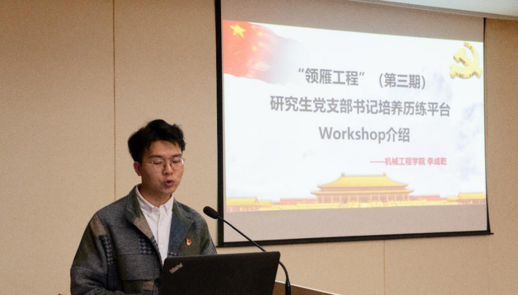 最后,机械工程学院李成乾同学从是什么、为什么、怎么办三个维度,向大家介绍了“领雁工程”平台的Workshop模块,样板党支部书记们按小组就后续各组工作方案进行了热烈讨论。