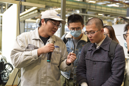 离开职工宿舍后,同学们参观了液压科技部,泵研究所的所长董可针对恒立企业生产的泵、马达等,进行了详细的介绍,同学们也在现场提出了自己的疑问。液压阀事业部的主管马鑫梁先生带领同学们参观了多条阀体自动化生产线,也详细讲解了多路阀阀体。人力资源部的吴经理带领同学们参观了FMS生产线、阀门试验台等。恒立液压厂实现了工业机器人的全自动加工组装,并能提供成套液压控制解决方案。同时,恒立集团逐步形成了面向中国、美国、德国、日本等市场集制造、销售、售后为一体的庞大市场网络,不断为全球客户提供高可靠性产品和高效便捷服务。整个参观过程中,同学们思维活跃,提问踊跃,与技术人员产生了良好的互动。