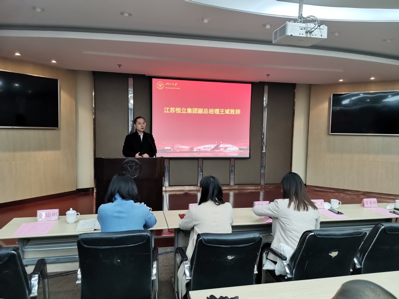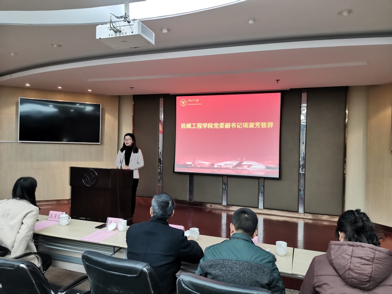 典礼的第一个环节,由机械工程学院党委副书记项淑芳老师致辞。项淑芳老师首先对恒立集团长期以来的信任与支持表达了感谢,也向获得恒立奖学金优秀学子们表示热烈祝贺。他表示,通过八年的愉快合作,机械工程学院与江苏恒立集团建立了深厚的友谊。