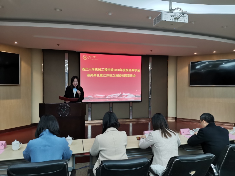 接下来进入颁奖典礼仪式,由浙江大学机械工程学院团委副书记张瑜彬老师宣读本次获奖学生名单,颁奖嘉宾为本年度恒立奖学金获得者颁奖。