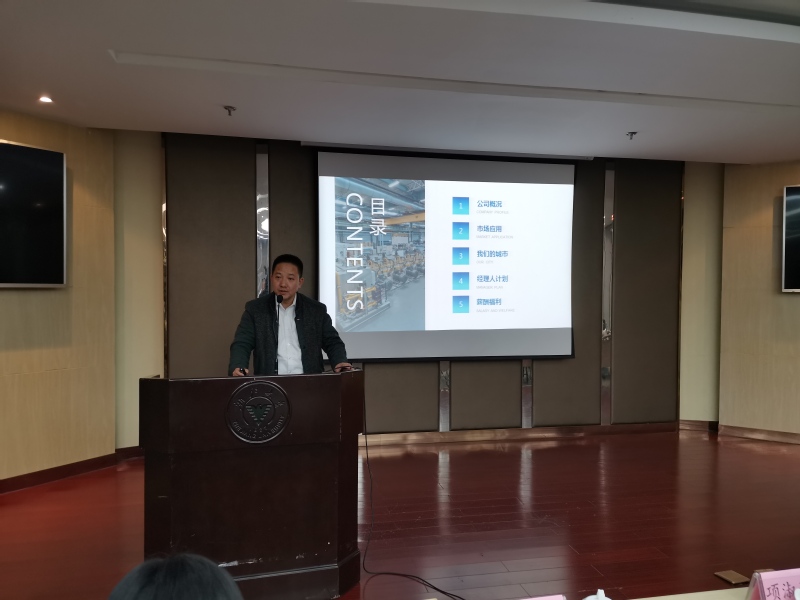 颁奖典礼结束后,江苏恒立集团人力资源副总监曾荣林对恒立集团进行了详细的介绍和宣讲,增加了同学们对恒立集团的认识及了解,拓展了同学们的视野,拉近了恒立集团与同学们的距离。