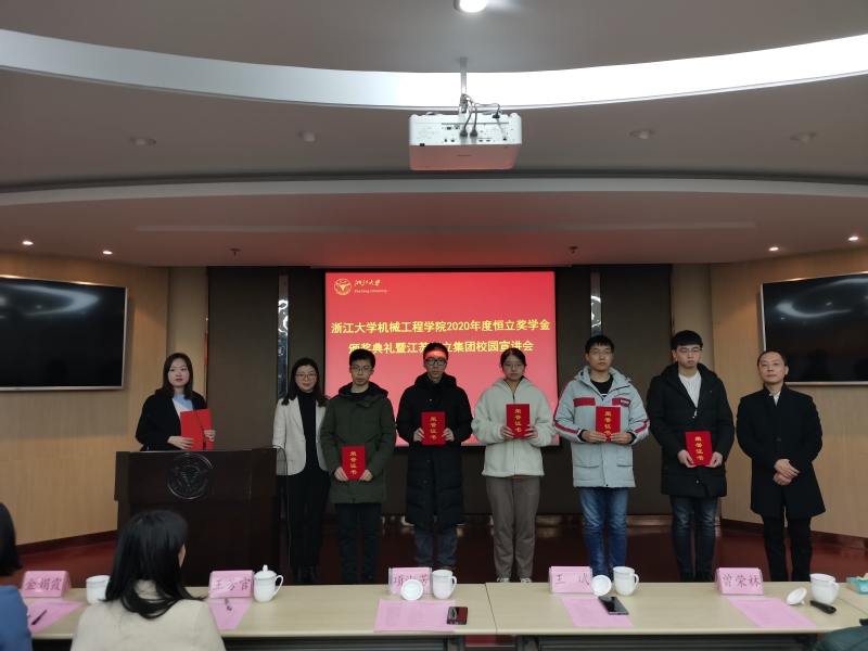 最后一个环节是恒立2021届校园招聘宣讲、互动环节,同学们认真聆听,积极参与,收获满满。至此,浙江大学机械工程学院2020年度恒立奖学金颁奖典礼暨江苏恒立集团校园宣讲会圆满落幕。