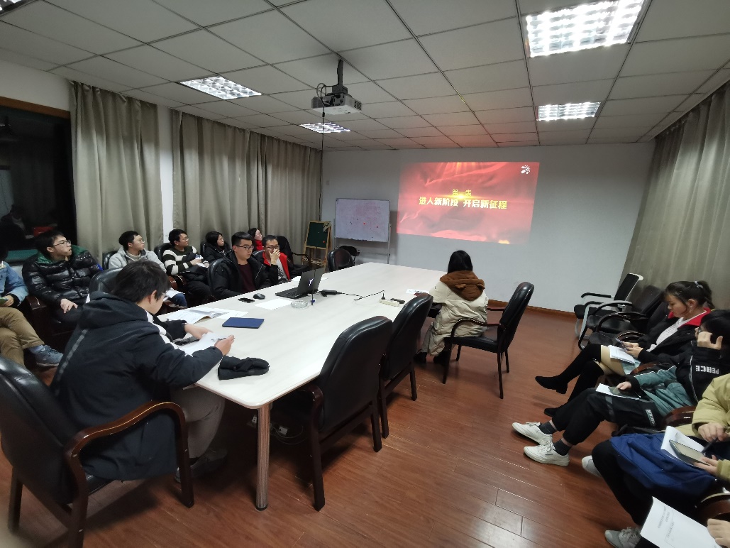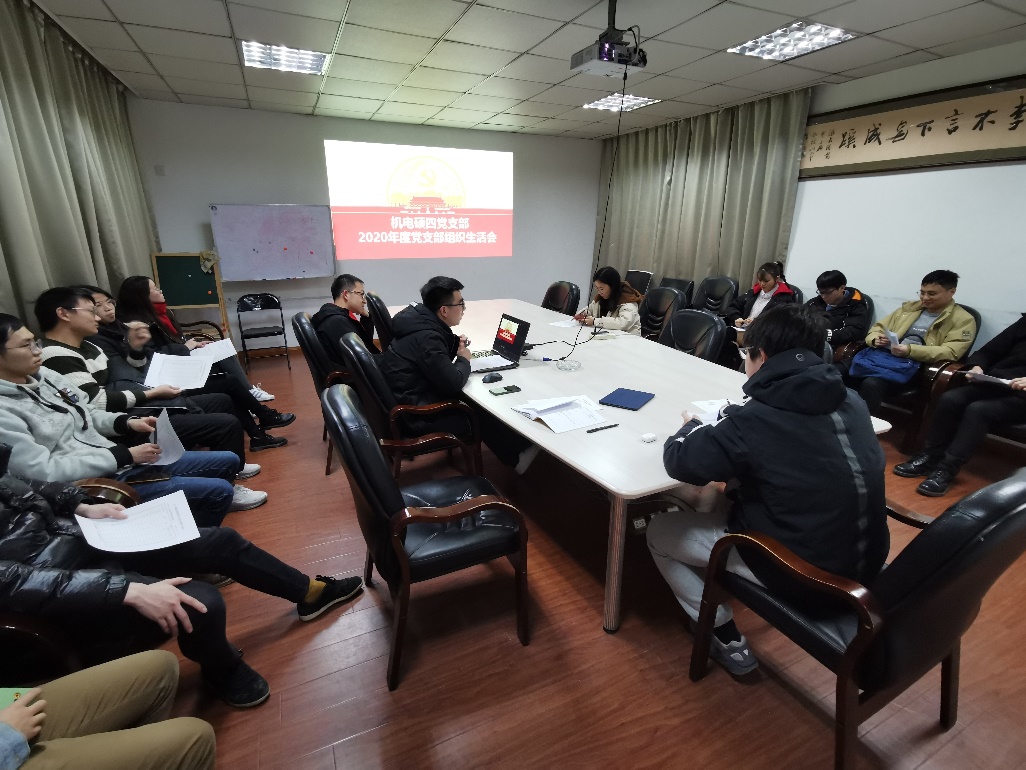 2021年1月12日晚七点,机电硕四党支部于液压新楼304召开党员大会,会议围绕党课学习、党支部工作总结、组织生活会和十九届五中全会精神学习四项内容开展。会议由支部书记符晓阳主持,到会正式党员13人,预备党员2人,1人请假。冬季学期即将结束,在2021年这个崭新的一年刚刚开始的时候,党支部成员在党支书的召集下聚集在一起,大家一起回顾了2020年,并对2021年作出展望。