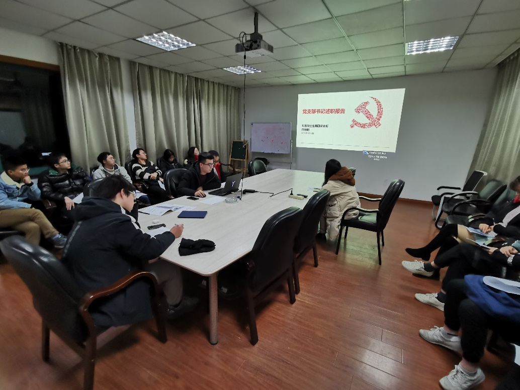 会议第二项内容是党支部工作总结,符晓阳同志就自己2020年的工作进行了述职报告,报告内容包括了过去一年的支部建设情况、学习活动情况和其他活动情况。过去一年里,支部按照学院要求定期举办党员大会,以支委讲党课等形式组织了多次学习活动,督促支部成员加强理论学习,提高知识水平。