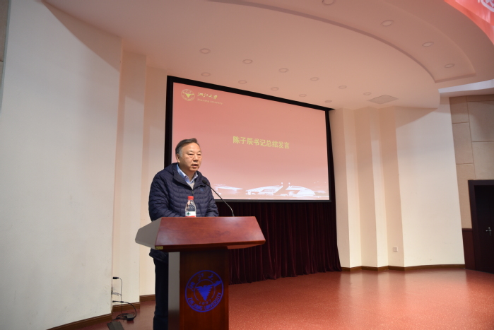 最后,陈子辰书记在会上做了总结发言,他回顾了圣奥集团、圣奥慈善基金会与浙江大学机械学院之间的良好合作,对圣奥给予浙江大学人才培养、教师发展上的支持表示了诚挚感谢,他希望同学们能深入理解“浙商精神”,确立坚定的人生目标,为新时代的中国特色社会主义建设添砖加瓦。