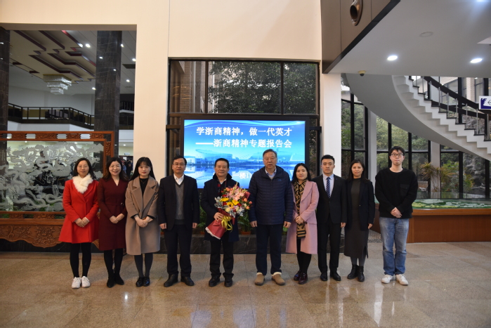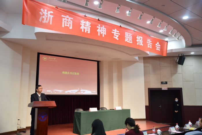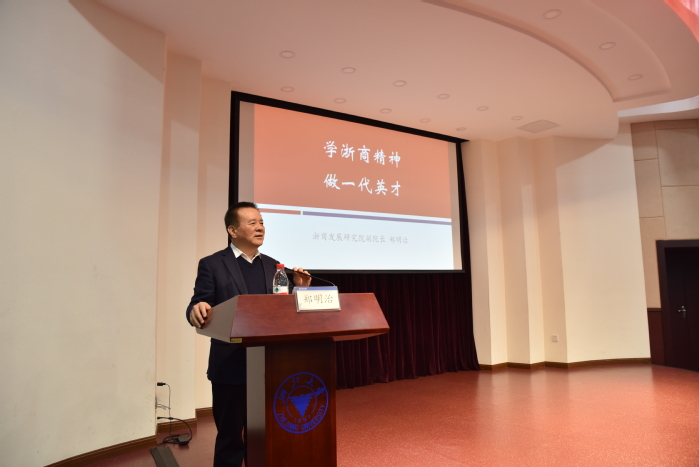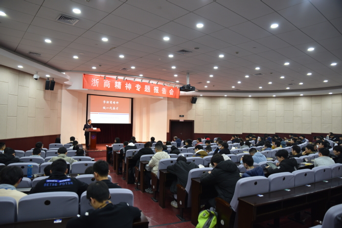 签约仪式后,郑明治会长做了“学浙商精神,做一代英才——浙商精神主题报告会”,通过自己的亲身经历阐述了“浙商精神”的意义和内涵,使同学们对“浙商精神”的理解进一步加深,大家也从郑明治先生的讲述中获益良多。