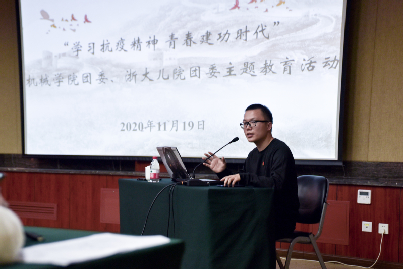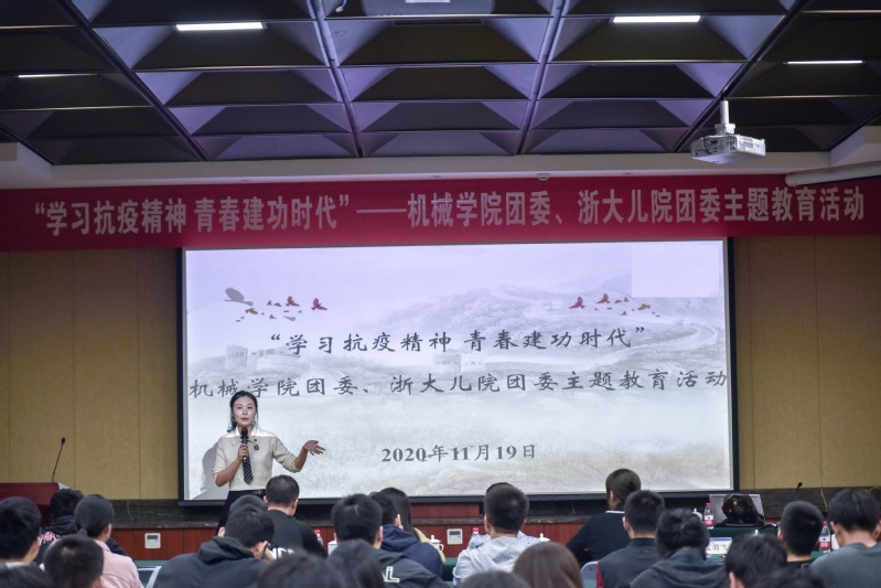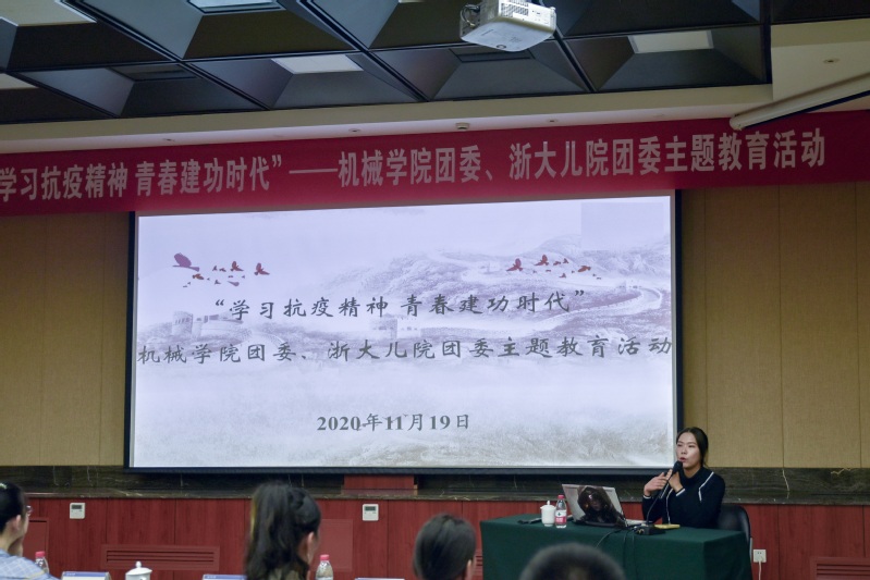 11月19日上午,“学习抗疫精神,青春建功时代”机械学院抗疫主题教育活动在浙江大学玉泉校区邵逸夫科学馆212会议室顺利举行。活动邀请到了浙江大学医学院附属儿童医院的医护人员为青年党员讲述抗疫故事。浙江大学医学院附属儿童医院泌尿外科护士长刘碧红,急诊科朱妙颖、护理科钱丹妮、医疗设备科孟羽飞以及医疗设备科林忠款参加活动,为机械学院学生党员分享了自己在疫情期间投身抗疫一线的动人故事。活动由机械学院团委副书记陈熠钧主持。