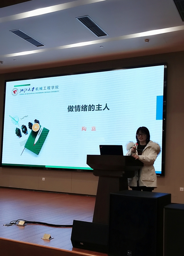为关爱校外研究所学生的心理状态,提升学生的心理健康知识,1月12日下午,机械工程学院团委陶意老师为浙江大学航空制造工程研究所的同学们带来了一场以情绪管理为主题的心理讲座。研究所副所长宋小文老师出席了该讲座。