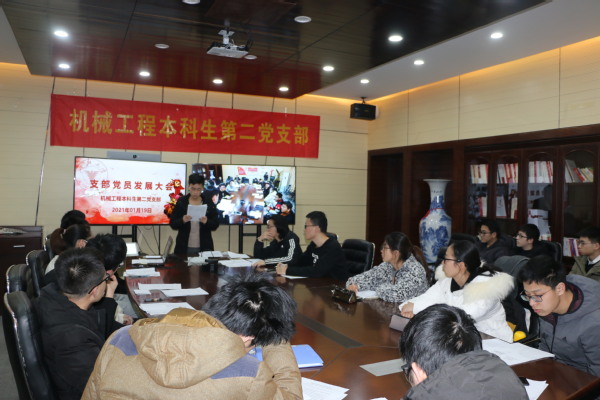 2021年1月19日,浙江大学机械工程学院本科生第二党支部首届支委选举大会和党员发展大会于玉泉校区教一411室正式召开。此次会议首先进行党支部支委选举,随后开始进行发展大会。