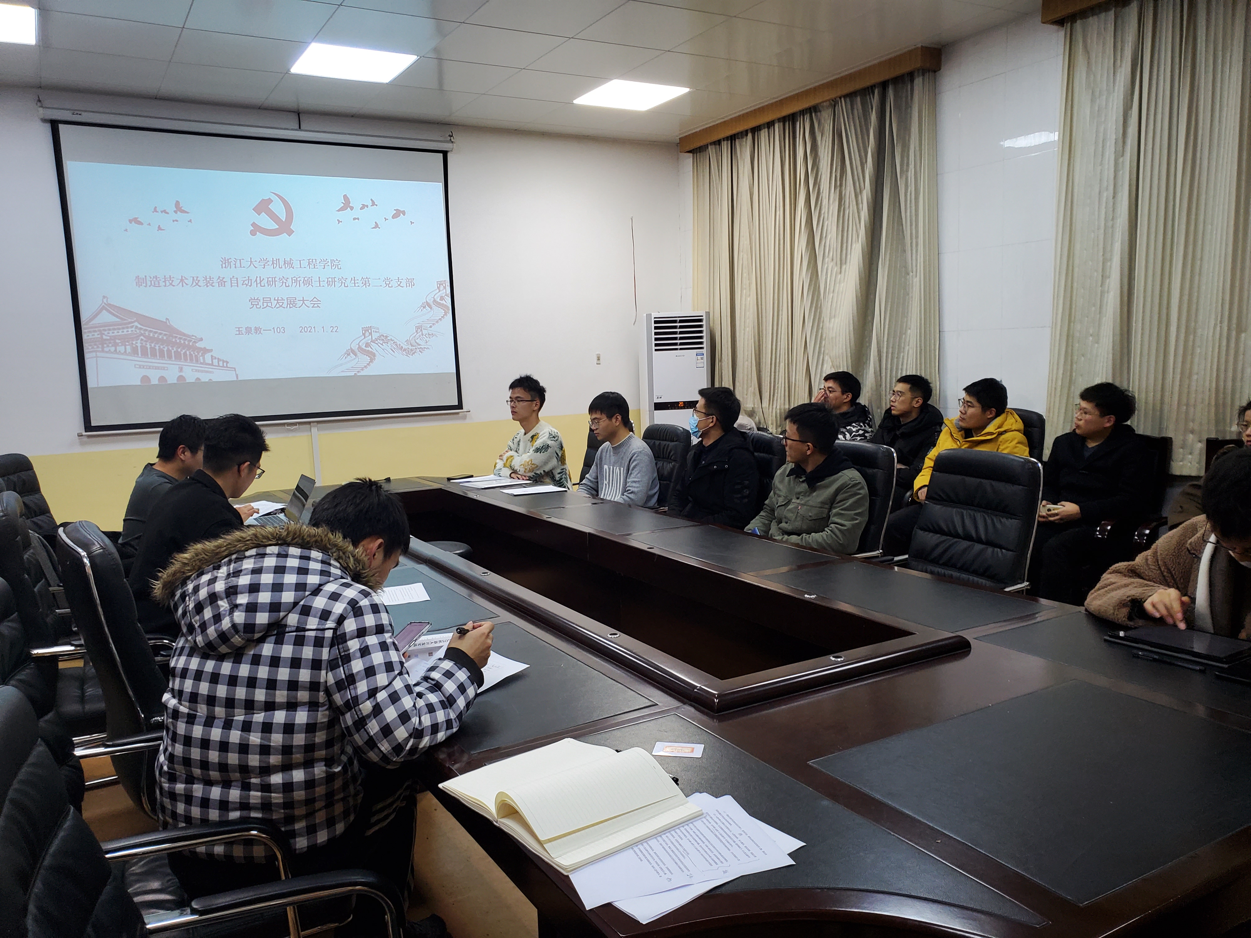 为了进一步壮大党员队伍,推进党的建设,不断增强党组织的凝聚力、战斗力和创造力。2021年1月22日星期五晚上19:00,机制硕二党支部在第一教学大楼一楼会议室举行预备党员发展大会。机制硕二党支部20位党员参加本次会议,会议由王振同志主持,与会党员充分讨论易顺、刘阔两位发展对象的发展事宜。