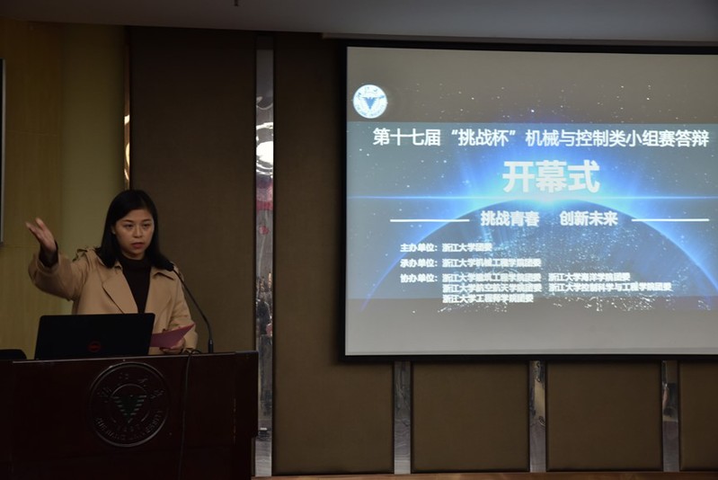 2021年3月19日,由机械工程学院承办,建筑工程学院、海洋学院、航空航天学院、控制科学与工程学院、工程师学院协办的浙江大学第十七届“挑战杯”大学生课外学术科技作品竞赛机械与控制类小组赛在玉泉校区永谦活动中心B座一楼报告厅顺利举行,开幕式由机械工程学院团委副书记金娟霞老师主持。