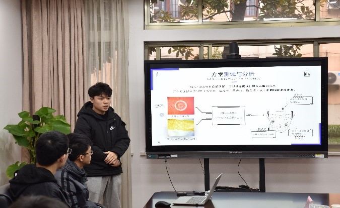 答辩过程中,参赛队伍分别结合自己作品的优势特点、创新点以及未来展望等在短短的6分钟内进行了精彩的展示,将作品的选题角度、创新思维、研究过程以及现阶段的科技成果一一呈现给了评委老师,部分团队还进行了现场实物展示,更直观地让评委老师对自己的参赛作品有一个较全面的认识。评委老师综合各方面因素对作品进行了打分排序,同时对各个参赛队伍提出了宝贵意见。