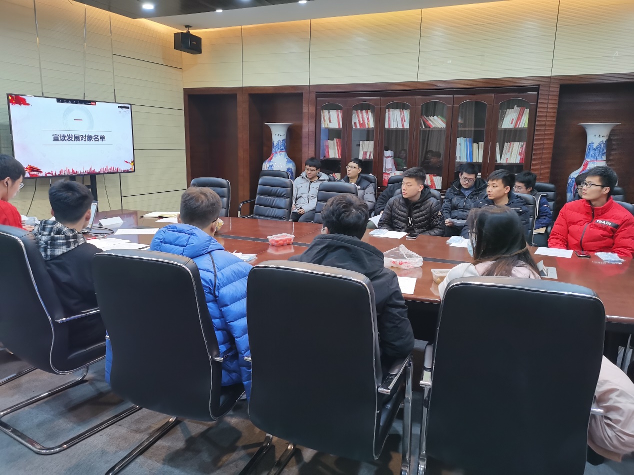 首先,党支部书记马梓健同志报告出席会议的党员人数,宣读发展对象名单,提出此次会议的具体要求。