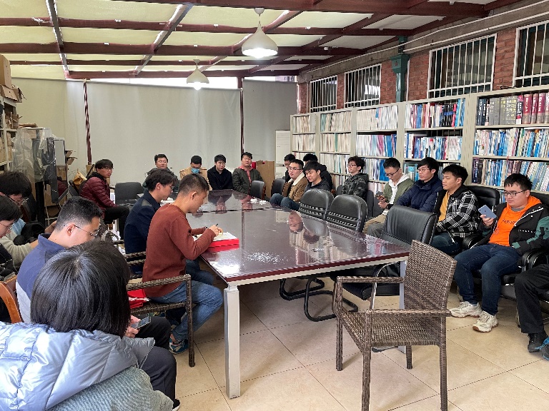 会议最后,两位预备党员在支部书记李志男同志的带领下进行入党宣誓,其他党员重温入党誓词,在清晰而又坚定的宣誓声的回响中,誓词再一次铭刻在每一个在场的人的心中,因为共同目标的凝聚,支部也拥有了更强的团结力量。